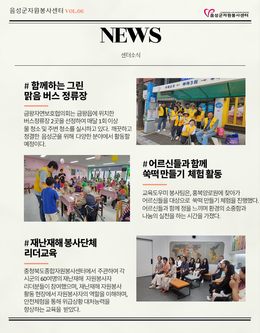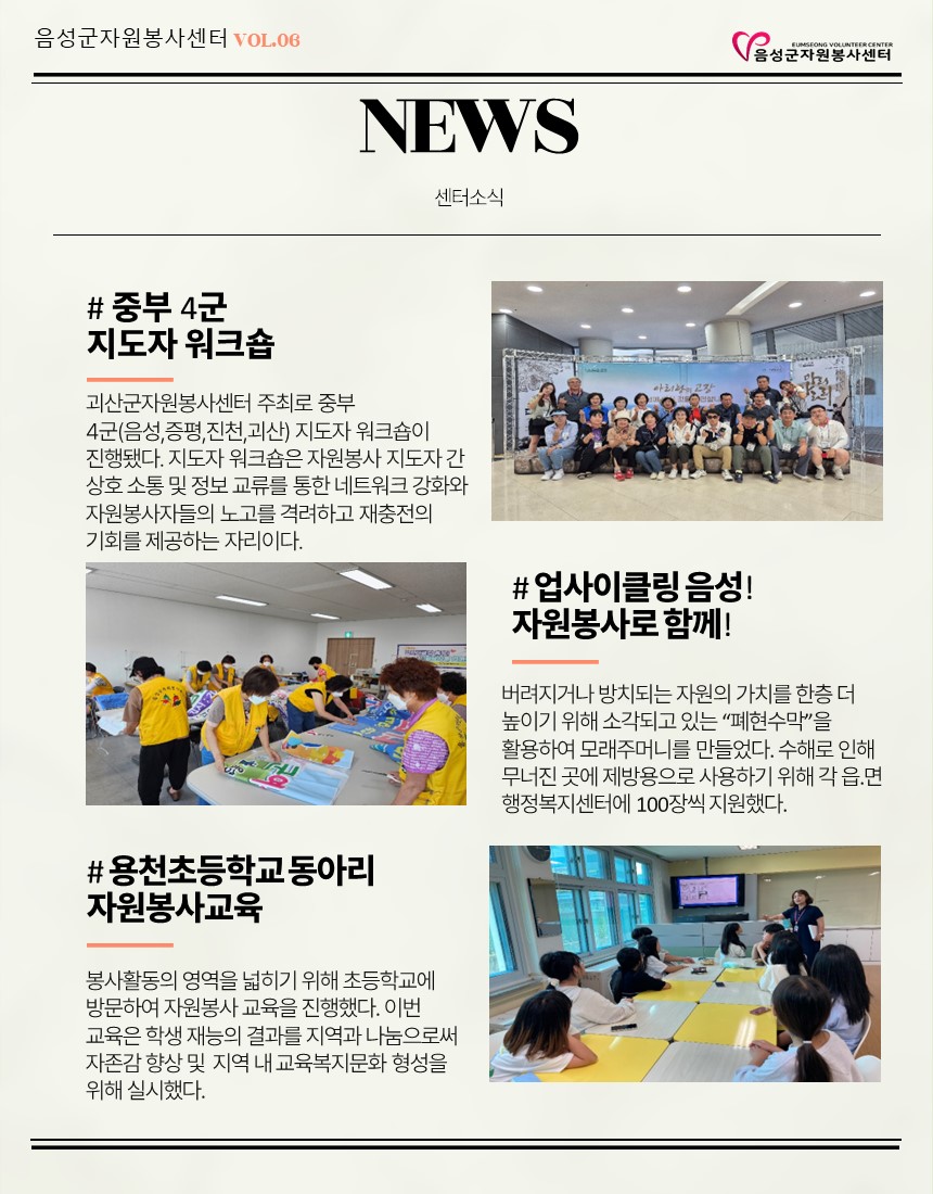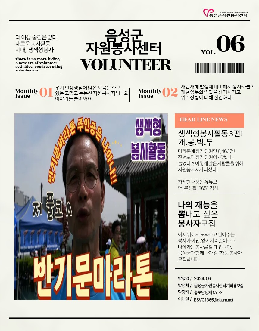 2024년 6월 웹진입니다. 작성자음성군자원봉사센터|작성시간24.07.08|조회수83 목록 댓글 0 글자크기 작게가 글자크기 크게가 다음검색 현재 게시글 추가 기능 열기 북마크 공유하기 신고 센터로 신고 댓글 댓글 0 댓글쓰기 답글쓰기 댓글 리스트