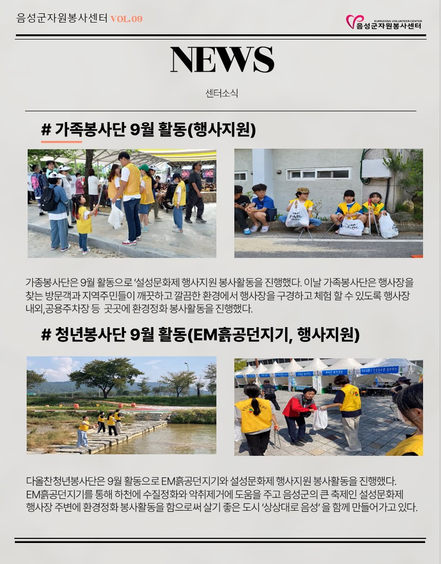 2024년 9월 웹진입니다. 작성자음성군자원봉사센터|작성시간24.10.14|조회수76 목록 댓글 0 글자크기 작게가 글자크기 크게가 다음검색 현재 게시글 추가 기능 열기 북마크 공유하기 신고 센터로 신고 댓글 댓글 0 댓글쓰기 답글쓰기 댓글 리스트