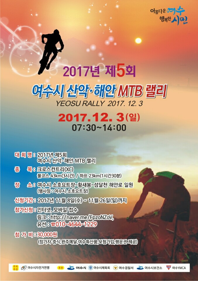 2017년 제5회 여수시 산악.해안 MTB 랠리를 다음과 같이 개최함을 알려드립니다.