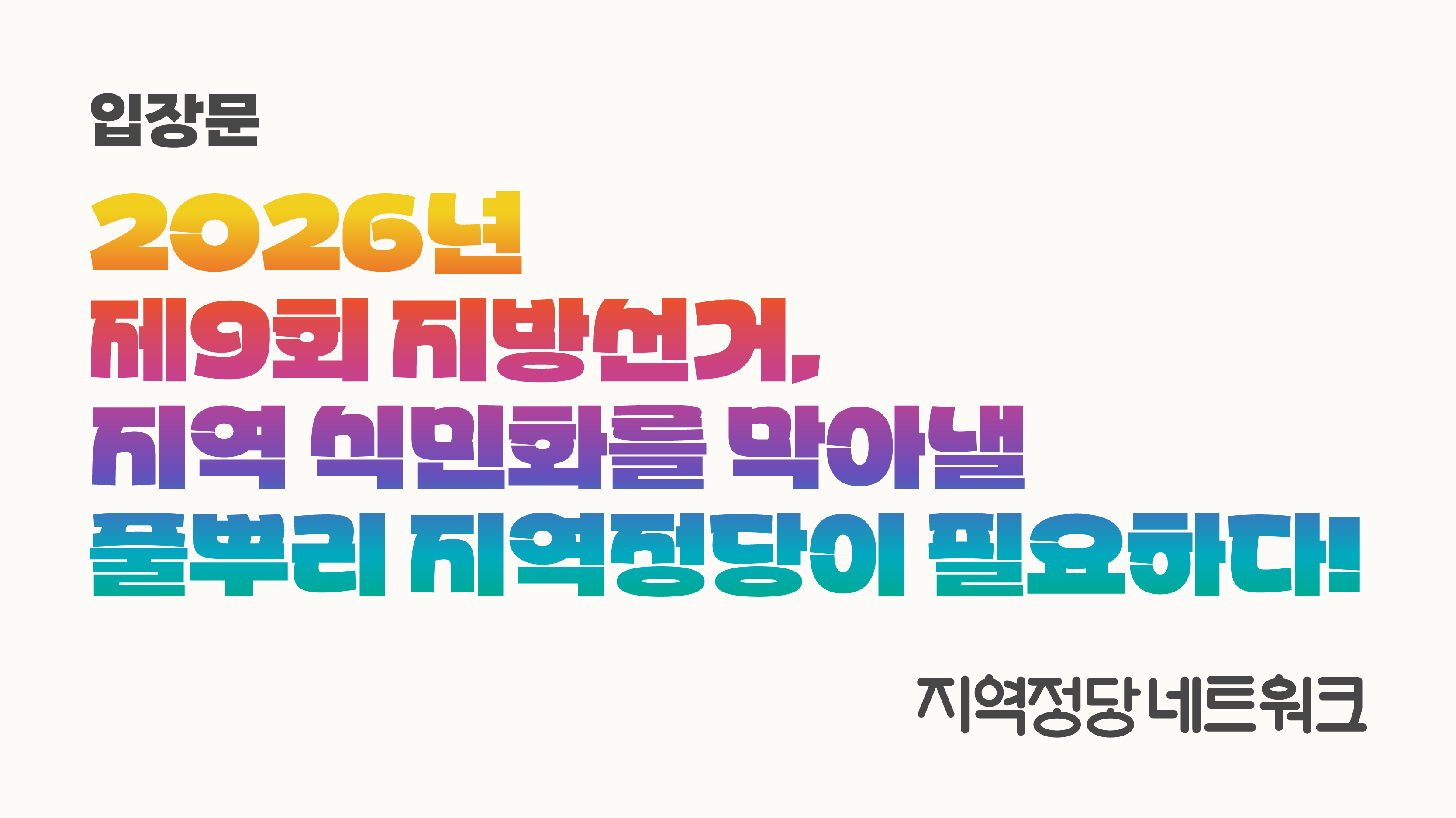 2026년 제9회 지방선거, 지역 식민지화를 막아낼 풀뿌리 지역정당이 필요하다!