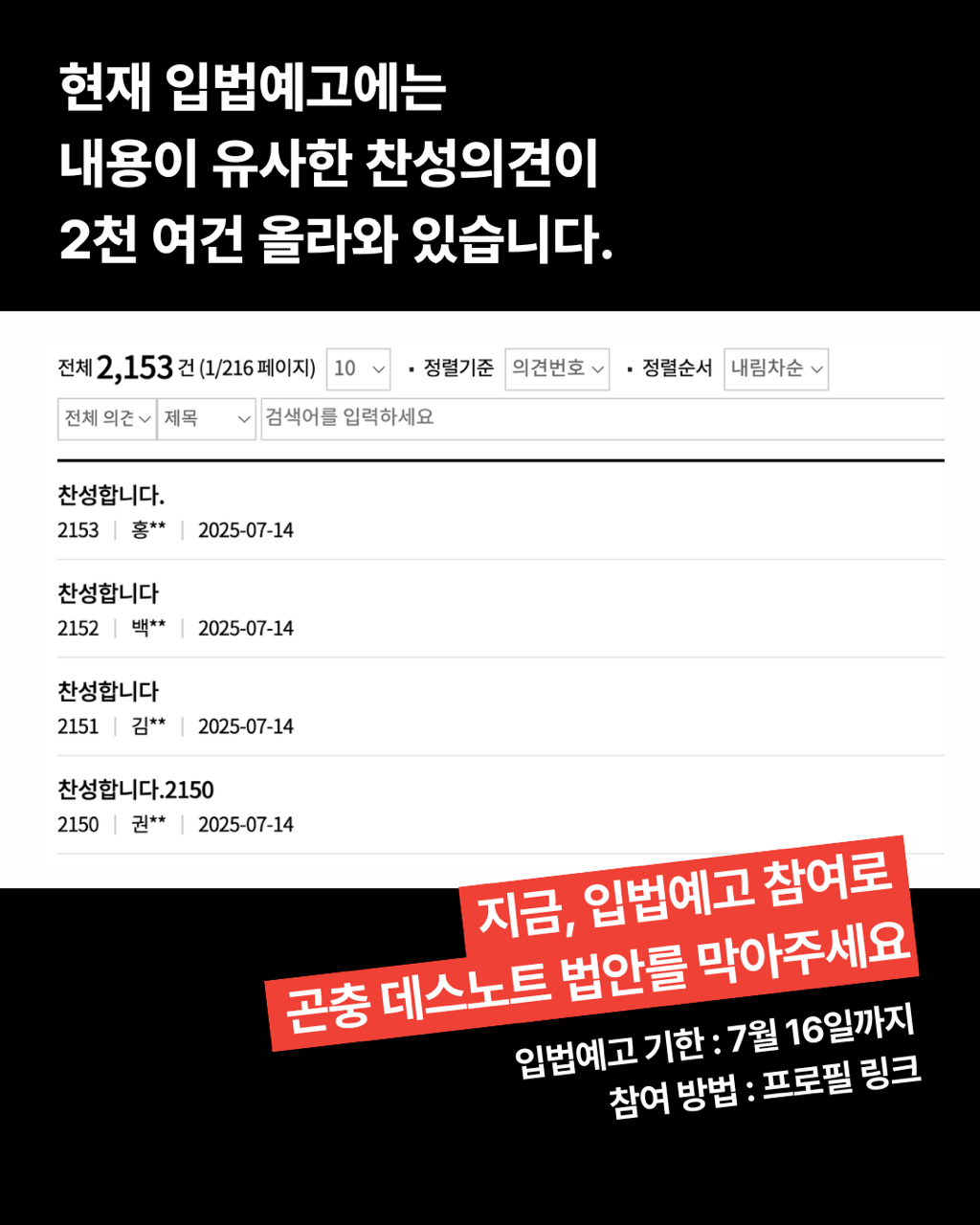 의견 남기기: https://pal.assembly.go.kr/napal/lgsltpa/lgsltpaOpn/list.do?lgsltPaId=PRC_U2S5S0B7B0Z3A0Y9Z0X3F0G9E1E4C1&searchConClosed=0&refererDiv=S&fbclid=PAQ0xDSwLic7dleHRuA2FlbQIxMQABp38TWJjhXTBDGHL2gjEjdqXJLmNeYyiw1WOYkfb75c-s9-RNWb6CVSX0v388_aem_kvPBDBqxFvDTlDuNi3kIBg%23