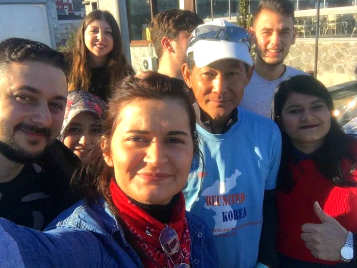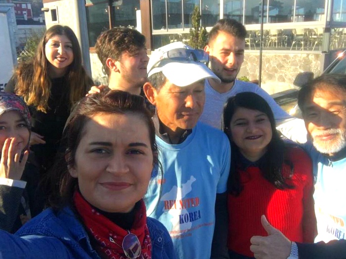 고속도로 휴게실에서 만난 대학생들에게 마패(대장정의 내용과 의의가 터키 TV 동영상) 보여주니~~ 모두가 One Korea 합창~~~
