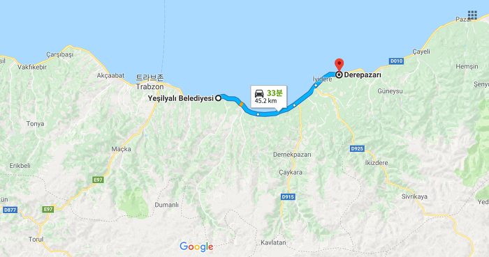 2018년 1월 7일 일요일 터키 Yeşilyal에서 Derepazarı까지(최소거리 약 43km)