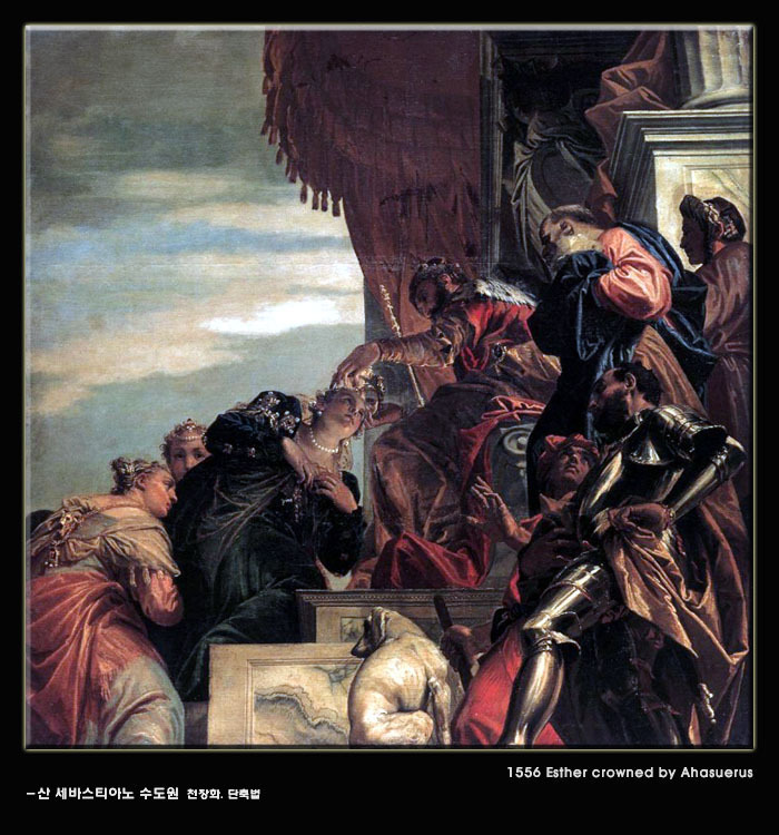 1555년에 베로네세는 베네치아의 산세바스티아노 수도원 원장의 의뢰를 받아 교회당 장식에 착수했는데, 그는 나중에 이 교회에 묻혔다. 천장에 그린 〈에스테르 이야기 Story of Esther〉에는 건축물의 번쩍이는 테두리 안에 단축법으로 묘사된 인물들을 배열하는 엄격한 구도, 그리고 밝은 터치 몇 개로 마치 살아 있는 것처럼 생생하게 묘사한 전면과 후면의 인물들을 거의 헤아릴 수 있을 만큼 나란히 배열하는 그의 장식적인 취미가 처음으로 나타나 있다.