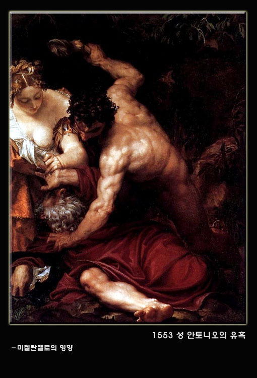 베로네세는 도메니코 브루사소르치, 잠바티스타 첼로티, 파올로 파리나티 등에게서도 영향을 받았다. 이들은 마니에리스모 양식에 매혹되어 줄리오 로마노와 라파엘로, 파르미자노 및 미켈란젤로의 작품을 연구했는데 1552년에 만토바 대성당에 그린 웅장하고 화려한 〈성 안토니우스의 유혹 Temptation of St. Anthony〉에는 미켈란젤로의 영향이 뚜렷이 드러나 있다.