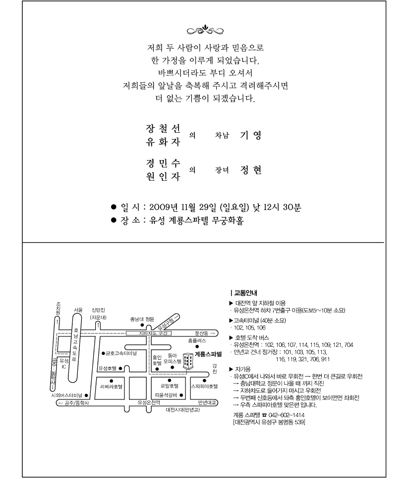 작성자5기윤백준 작성시간 09.10.31 징그럽게 연예하고..이제서야 결실을 맺는구나~!!완전 축하한다!!! 근데 어떻게 기영이랑 판박이냐~,,ㅡㅡ;ㅋ큰일났군~ㅎㅎ 정말 축하하고!!꼭참석할께!!그때 보자~축하해`ㅋㅋ