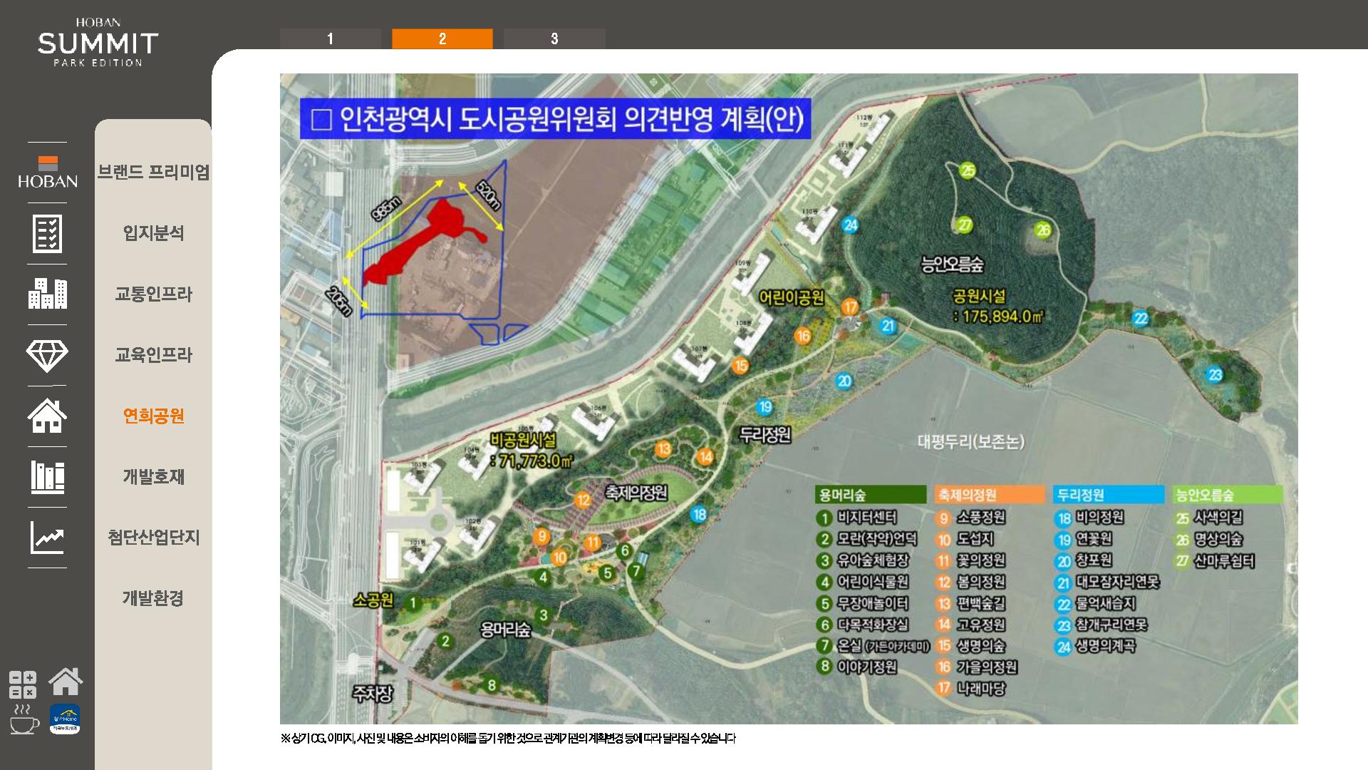 이 공동주택 건립사업은 인천 연희공원 공원특례화사업의 일환으로 건립되는 희소가치가 높은 입지여건이 주목되는 곳이며 연희공원의 쾌적한 녹지공간을 품고 있으면서, 베어즈베스타G.C과 연접한 위치에 따라 다양한 방향의 조망이 우수한 장점을 지니고 있습니다.