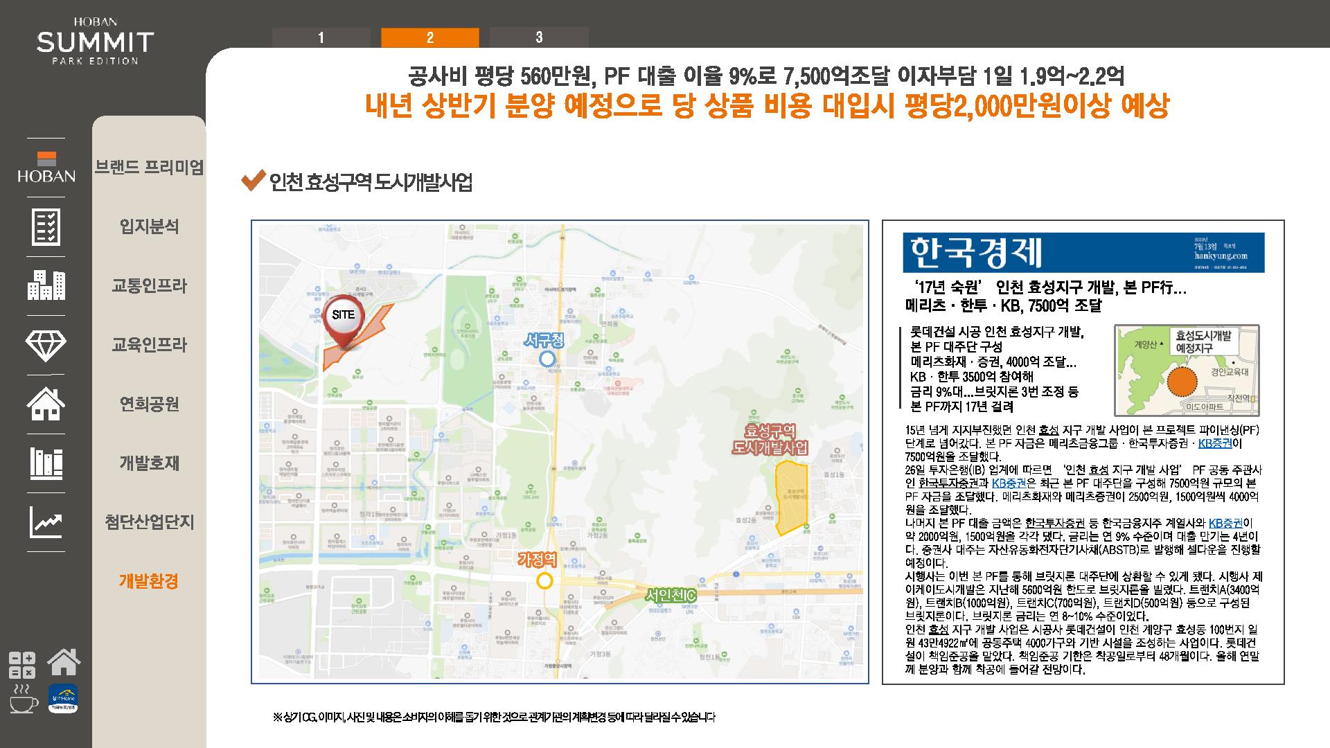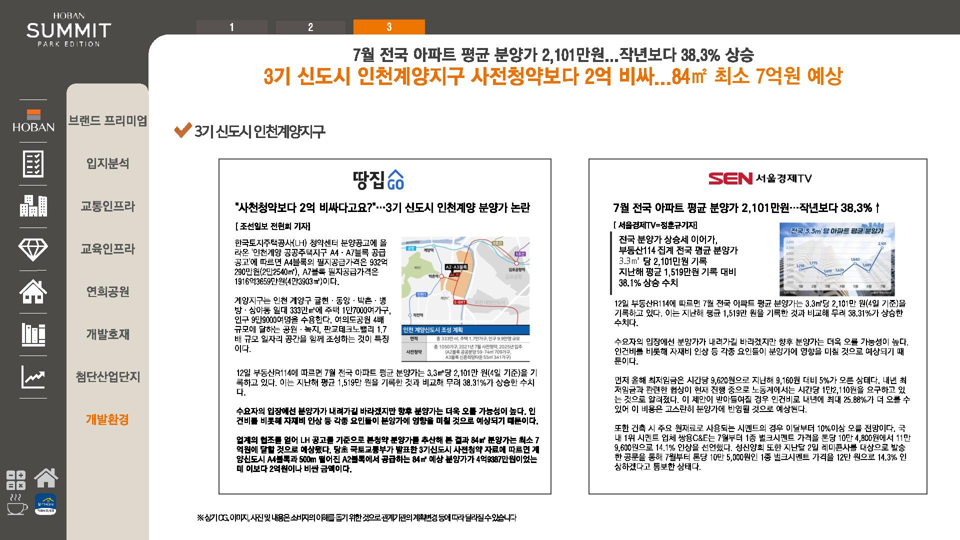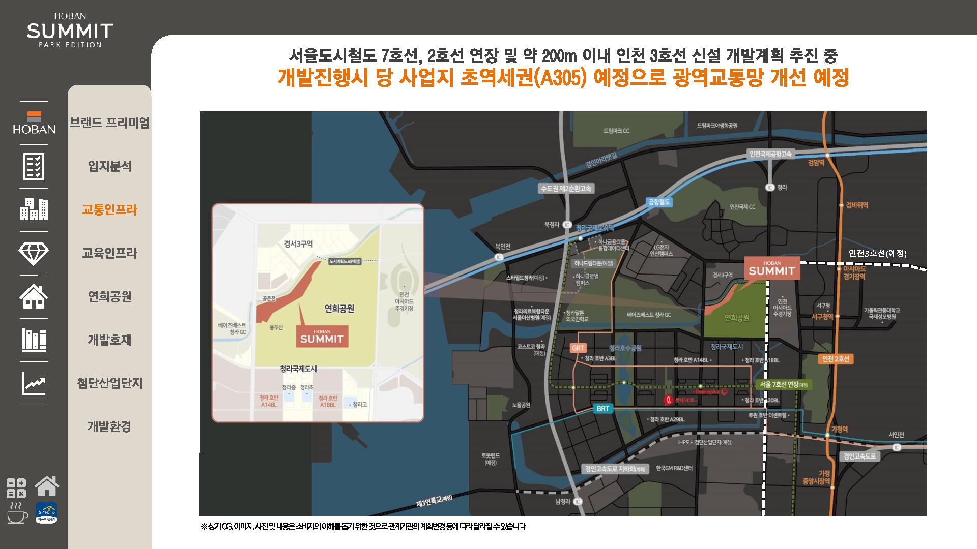 이외에도 교통개선 부분이 주목되는 데, 첫째) 인천지하철 3호선 추가 계획에 따른 초역세권이 될 입지라는 것과 2호선, 7호선 지하철 연장의 수혜가 직.간접적으로 이뤄지는 입지여건을 갖춰 지금 현재의 모습이 아닌 몇년 후, 변화될 교통환경을 바라보며 투자선택을 하셔도 성공적인 시세차익 프리미엄을 누릴 것으로 예상됩니다.