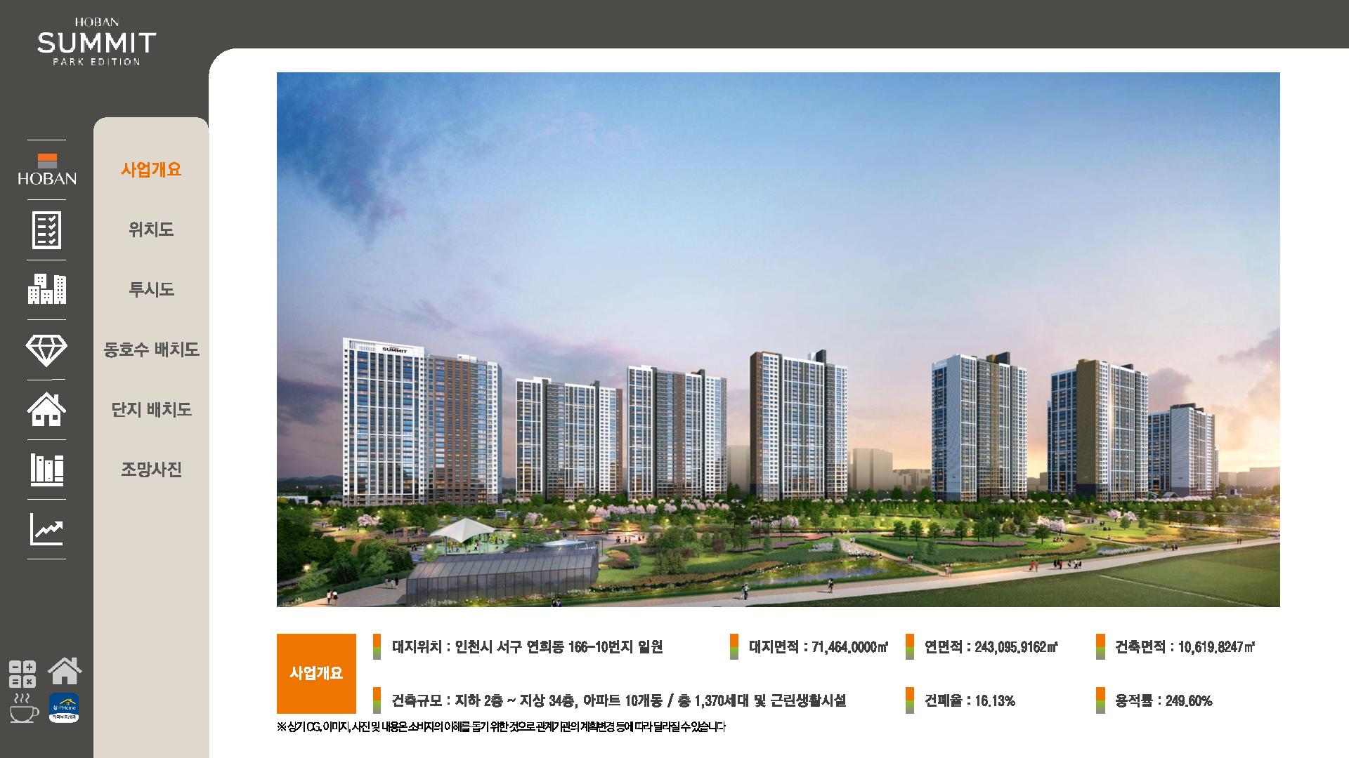 건립위치는 인천광역시.서구.연희동 166-10번지 일원의 제3종 일반주거지역 용도지역에 지하2층에서 지상34층, 총10개동 총1,370세대 중대형 아파트와 근린생활시설(상가)를 건립하는 프로젝트이며, 대지면적 71,464㎡ 부지에 총연면적 243,095 ㎡의 외형을 갖추게 됩니다.