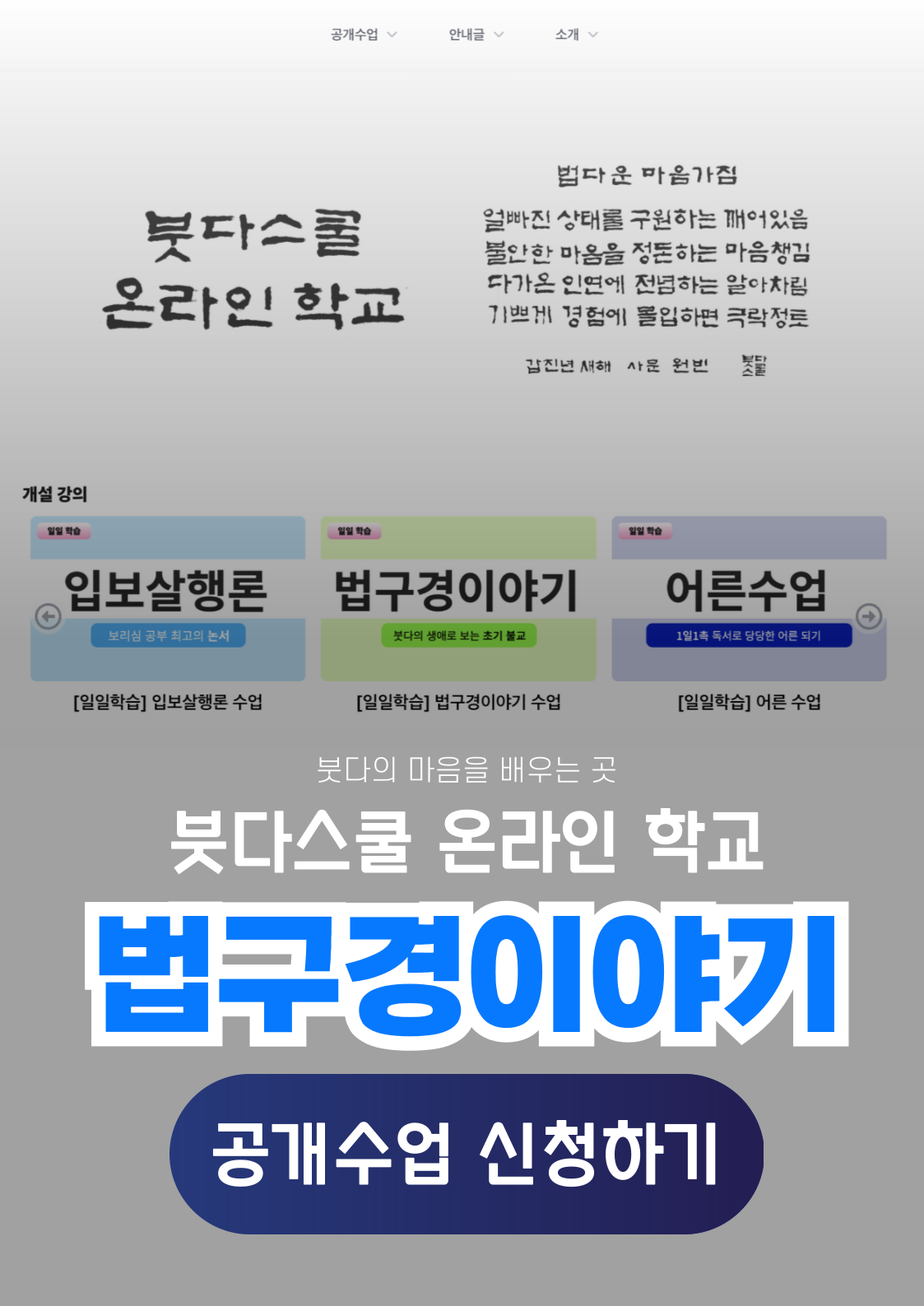 법구경 이야기 공개 커리큘럼 https://www.buddhaschool.co.kr/free-class