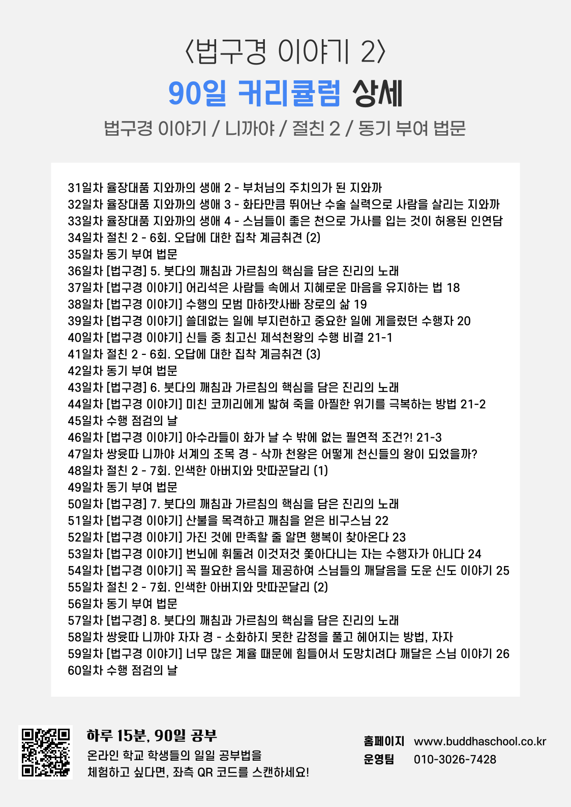 이번 학기 공개 커리큘럼은 <법구경 이야기 2>입니다.