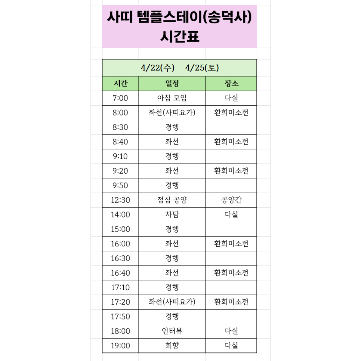 송덕사 정기 사띠 수행 : 5월 19일 - 22일(3박 4일)
