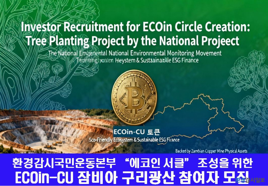 환경감시국민운동본부가 추진하는 ECOin-CU 프로젝트는 본래의 나무심기 사업을 대대적으로 확장하여 친환경 생태계 구축과 지속 가능한 ESG(환경·사회·지배구조) 금융의 실현을 위한 ‘에코인 써클’ 조성으로 나아가고 있다. 이 프로젝트는 잠비아 구리 광산을 실물 자산으로 담보한 혁신적인 스테이블 코인 ‘ECOin-CU 토큰’을 중심으로 환경 보호와 경제적 가치를 동시에 추구하는 차세대 금융 모델이다.