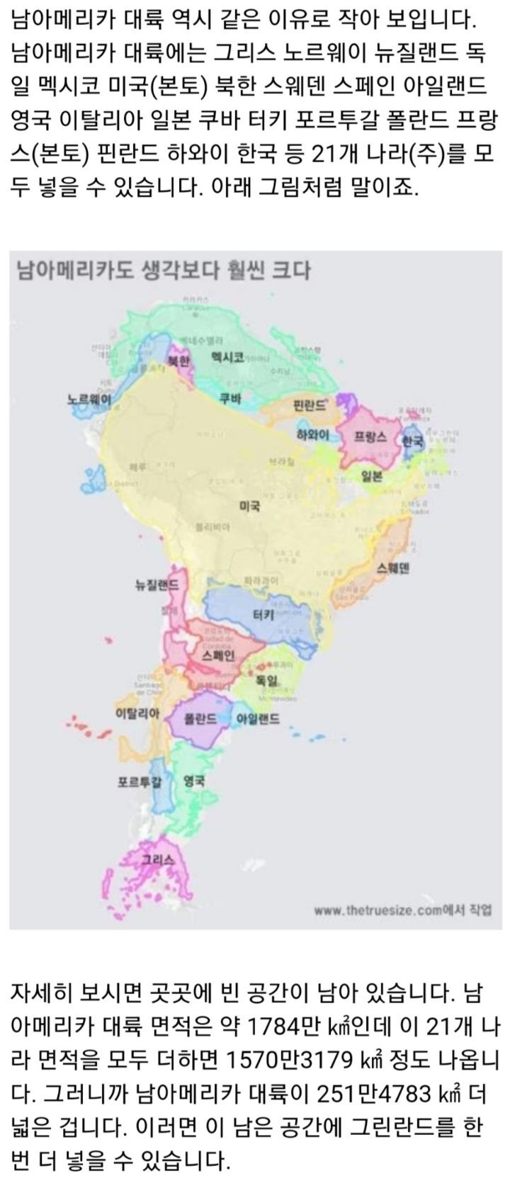 [스크랩] 아프리카와 남아메리카 실제 크기 작성자타산지석|작성시간22.06.09|조회수9 목록 댓글 0 글자크기 작게가 글자크기 크게가 https://www.donga.com/news/amp/all/20170913/86313859/1[데이터 비키니]아프리카는 정말 크다, 남미도 정말 크다학창 시절 과학 시간에 배운 것처럼 아프리카(사진 오른쪽)와 남아메리카는 원래 한 대륙이었습니다. (물론 원래는 모든 대륙이 하나였습니다.) 이것만 똑같은 게 아닙니다. 실제보다 작아 보인www.donga.com전세계 인구분포 다음검색 스크랩 원문 : 텐인텐[10년 10억 만들기] 현재 게시글 추가 기능 열기 북마크 공유하기 신고 센터로 신고 댓글 댓글 0 댓글쓰기 답글쓰기 댓글 리스트