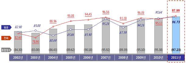 고객서비스 모니터링 점수 추이(최근 10년간)