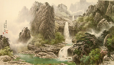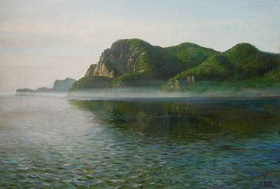 [금강산 계곡] 백호창작사 (공훈) 김룡. 백호미술창작단에서 창작활동 중. 대표작 건설장/ 회령의 고향집/ 어머니/ 간석지등