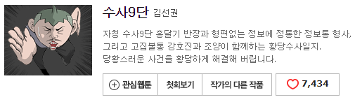 -공포+미스터리+범죄 수사물 네이버 웹툰 초창기 인기작 중 하나로 기억함
