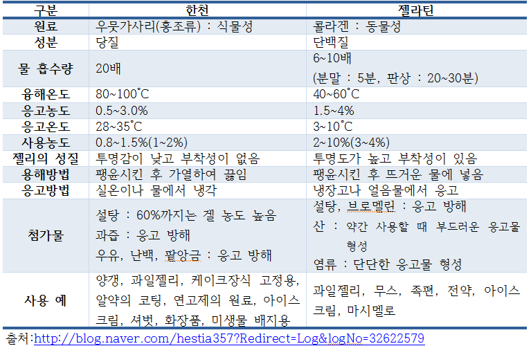 한천과 젤라틴의 특성 비교 작성자조영선(11A)|작성시간12.06.04|조회수435 목록 댓글 0 글자크기 작게가 글자크기 크게가 다음검색 현재 게시글 추가 기능 열기 북마크 공유하기 신고 센터로 신고 댓글 댓글 0 댓글쓰기 답글쓰기 댓글 리스트