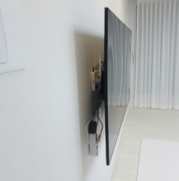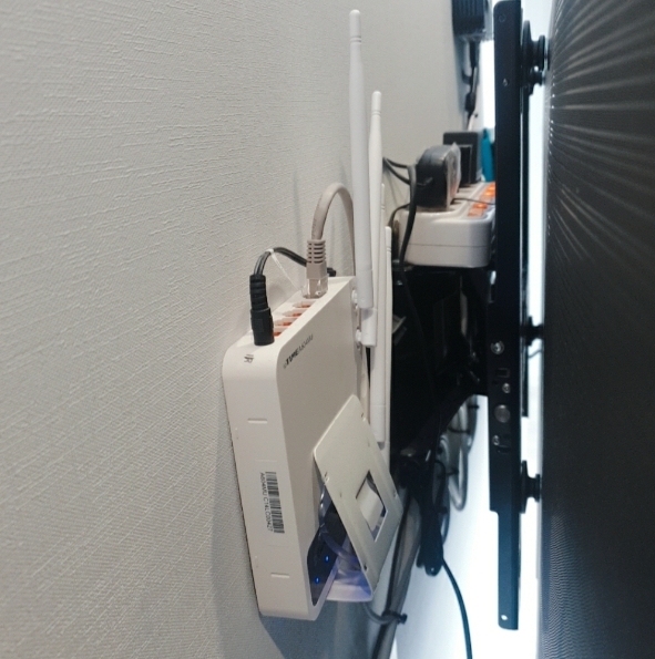 저는 거실 벽면 뒷면에 iptime 공유기를 고정해놓고
