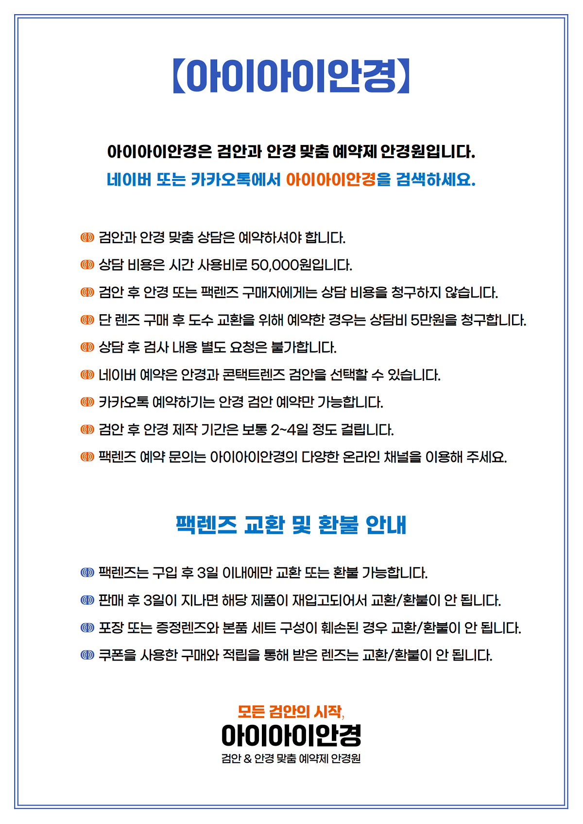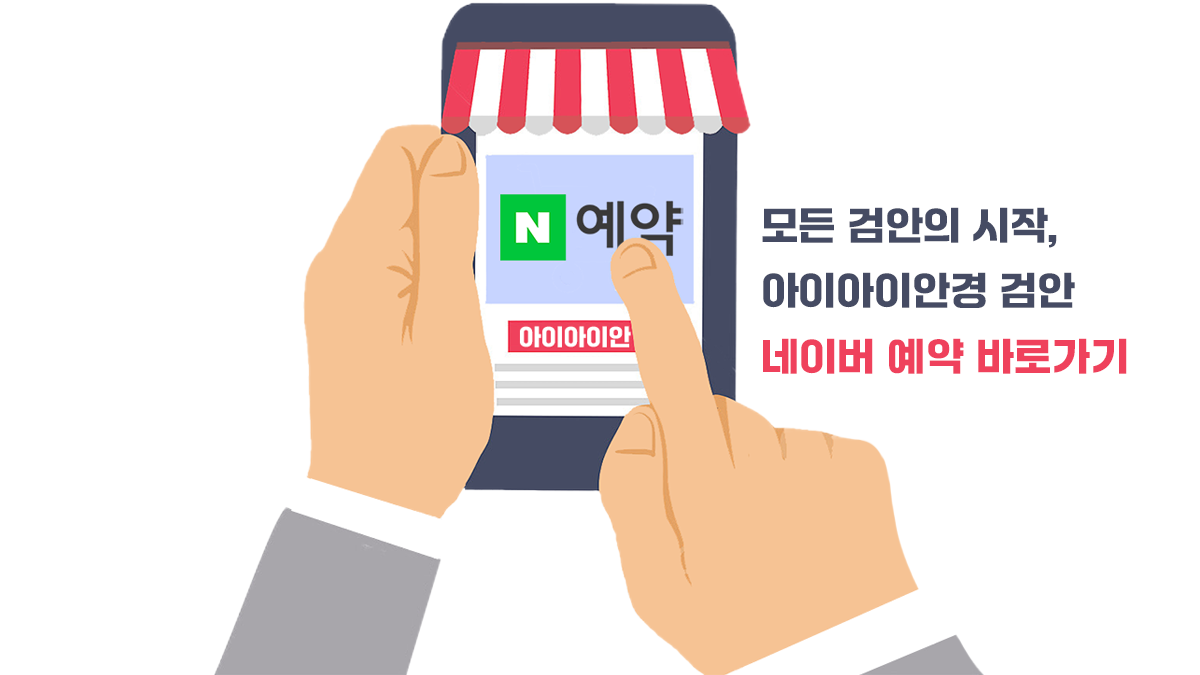 아이아이안경 검안과 안경 맞춤은 네이버에서 예약 가능합니다. 아래 이미지를 클릭하세요.
