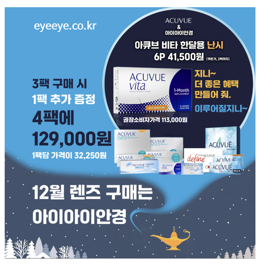 4. 렌즈 가격과 행사는 위 안내에서 볼 수 있습니다.
