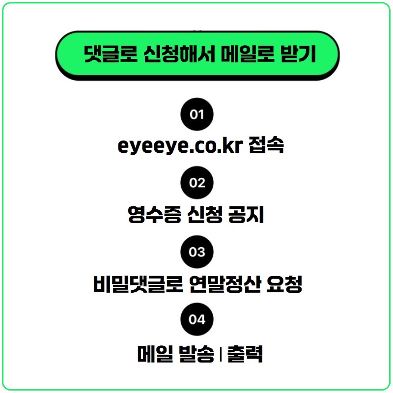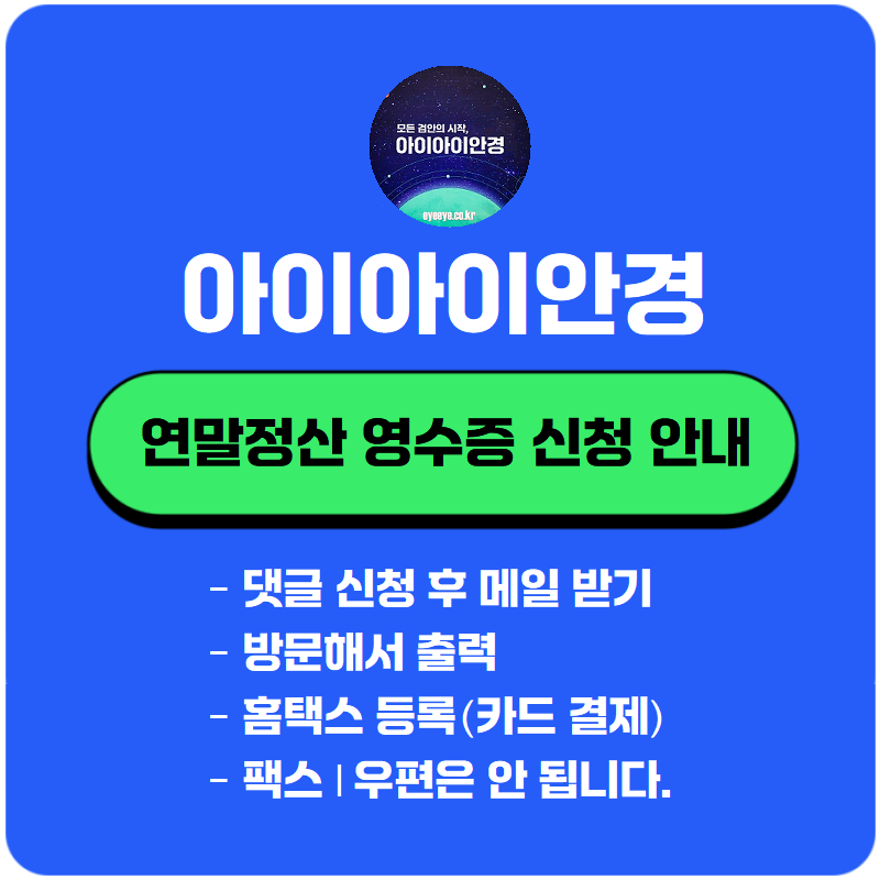 영수증 발급은 메일로 받는 방법과 안경원에 방문해서 받는 방법이 있습니다. 참고로 FAX와 우편 발급은 안 됩니다.
