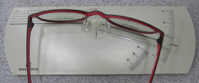 위 사진의 안경테는 안경렌즈가 들어가는 전면 림 각도가 좀 큰 편입니다. 그 결과 위 상태 그대로 렌즈가 들어가면 좋은 안경이 되지 못합니다. 다만 사용되는 안경렌즈의 도수가 높아서 렌즈 전면 곡률이 평평한 경우 위 안경테도 적합한 전면 림 각도를 갖출 수 있게 됩니다. 이러한 부분은 안경사가 안경렌즈 교체 작업 전에 미리 감안해야 합니다.