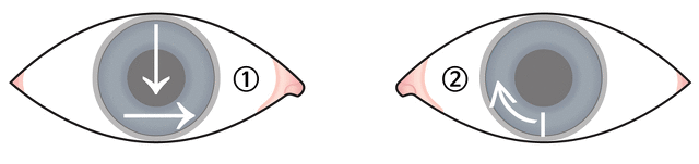 사람마다 렌즈 회전을 일으키는 요인이 각각 다릅니다. 그 결과 누군가에게 잘 맞는 렌즈라도 다른 사람에게는 잘 맞지 않을 수 있습니다(그림 2). 이 문제 때문에 렌즈 회사에서는 자사만의 디자인을 개발하여 난시용 렌즈의 회전을 최대한 제어합니다.