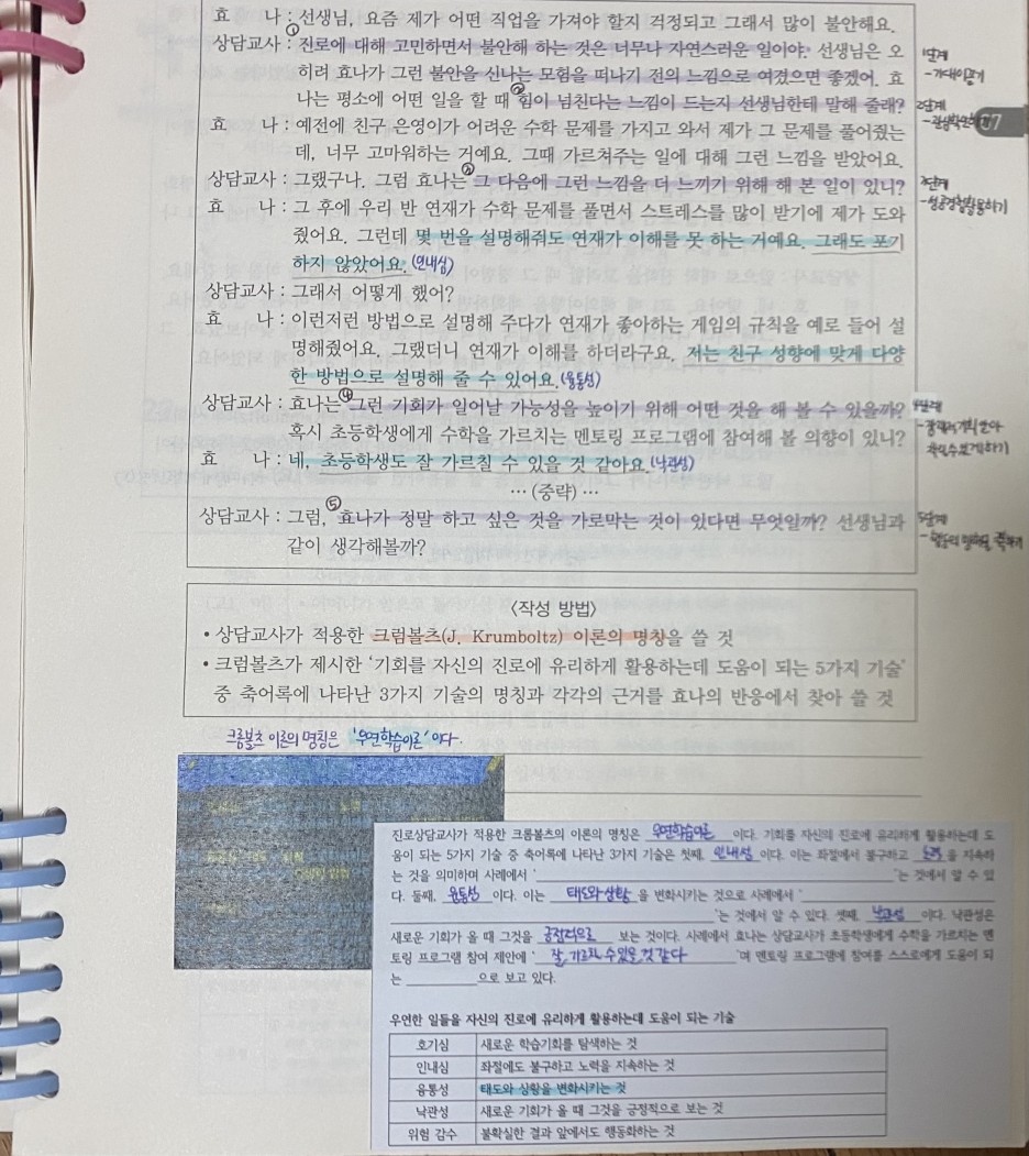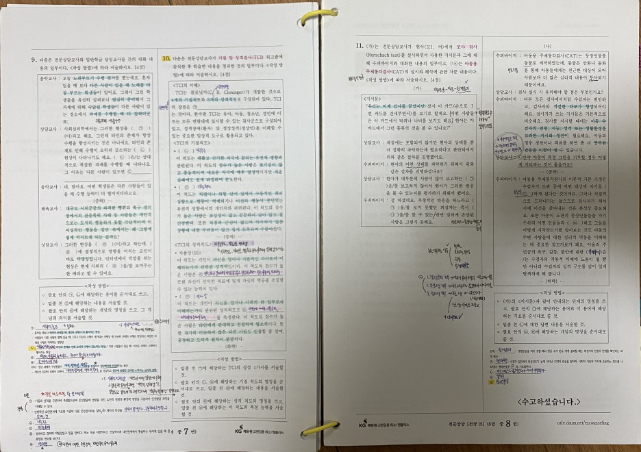 그냥 순서대로 상이실과 성격심리/진로상담과 심리검사/가족상담과 집단상담/나머지 과목들/그리고 답지