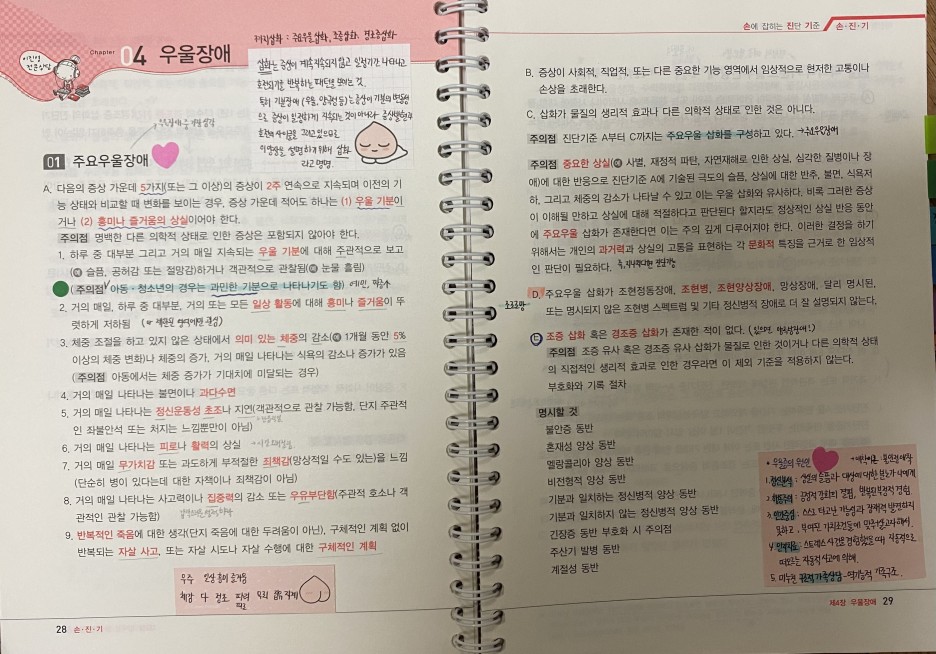 이건 가능하면 다 외우려고 했어요! 디뽀심뽀라고 DSM이랑 심리검사 뽀개기로 매일 조금씩 나눠서 전화스터디를 이용했어요:)