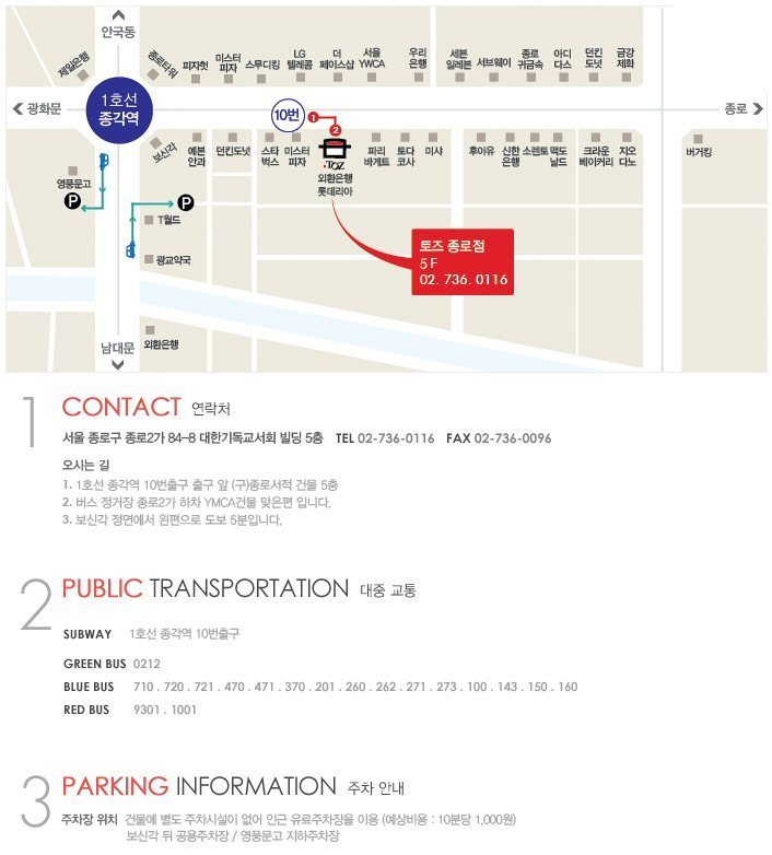 교육장소 : 서울시 종로구 종로2가 84-8 대한기독교서회 빌딩 5층(토즈 종로점:02-736-0116)