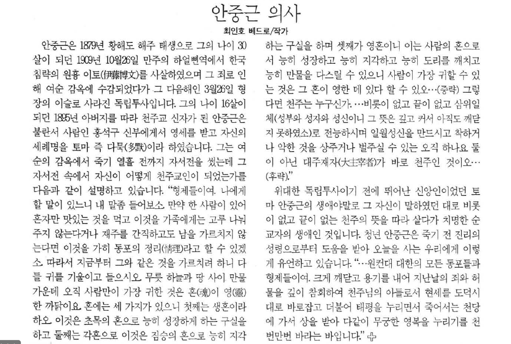 [최인호칼럼]안중근 의사 작성자♥보니파시아|작성시간17.06.12|조회수15 목록 댓글 0 글자크기 작게가 글자크기 크게가 다음검색 현재 게시글 추가 기능 열기 북마크 공유하기 신고 센터로 신고 댓글 댓글 0 댓글쓰기 답글쓰기 댓글 리스트