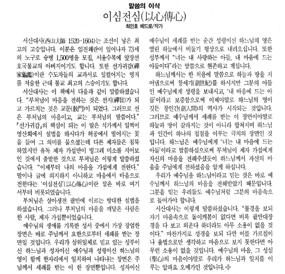 [최인호칼럼]이심전심 작성자♥보니파시아|작성시간17.09.02|조회수15 목록 댓글 1 글자크기 작게가 글자크기 크게가 다음검색 현재 게시글 추가 기능 열기 북마크 공유하기 신고 센터로 신고 댓글 댓글 1 댓글쓰기 답글쓰기 댓글 리스트 작성자로사구 | 작성시간 17.09.13 아멘. 댓글 전체보기