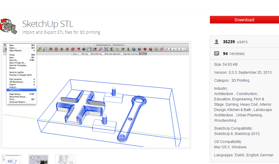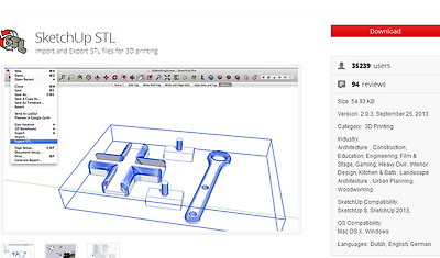 | SKETCHUP STL 확장기능 http://extensions.sketchup.com/en/content/sketchup-stl |
