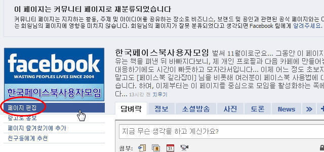 4-1. 해당 페이지 접속, 왼쪽 상단 페이지 로고 이미지 아래 [페이지 편집]을 클릭: