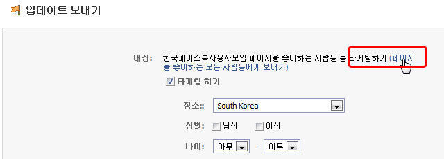 4-5. 타게팅하기 옵션을 없애려면 다시 [페이지를 좋아하는 모든 사람에게 보내기]를 클릭하거나, 또는 [타게팅 하기] 앞의 옵션 박스의 체크를 해제할 것!