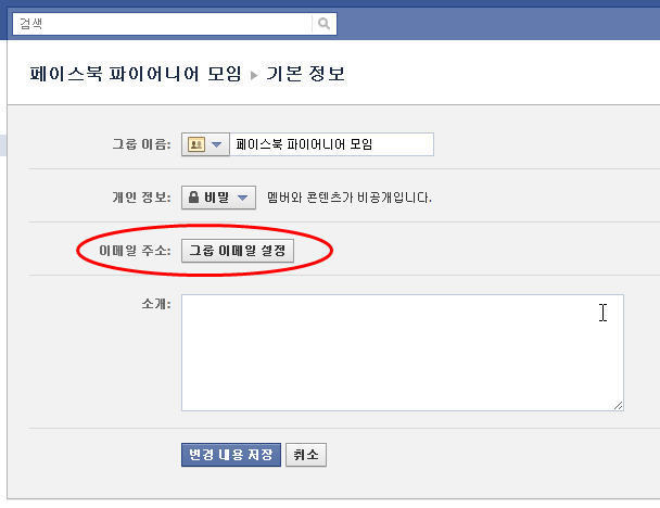 한 가지 유의하실 점은 [그룹 대표 이메일] 을 부여해서, 그 이메일로 보내는 모든 글은 그룹 담벼락에 올라오는 동시에 해당 그룹 소속 멤버들의 페이스북 접속계정 이메일로도 동시에 날아가게 됩니다... (알림 메시지 날아가는 것처럼!)