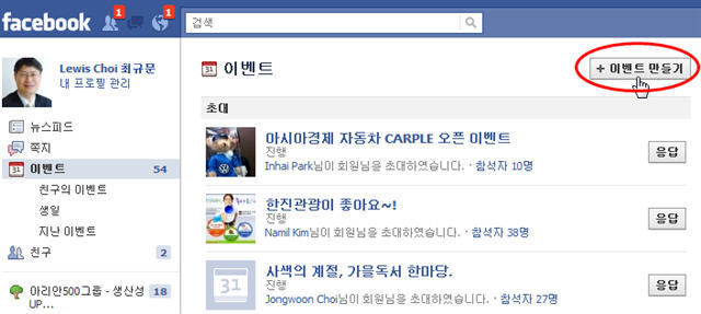 이상과 같은 [동보 쪽지 보내기] 외에도 이벤트를 만들어서 해당 이벤트를 알리는 쪽지를 초대하고 싶은 친구를 선택하여 모두에게 한꺼번에 발송할 수 있습니다.