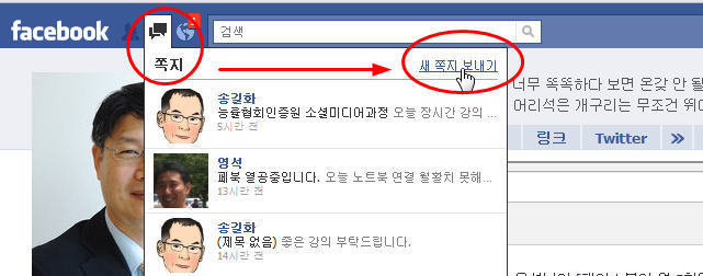4. [페이지]에서 동보 쪽지 보내기