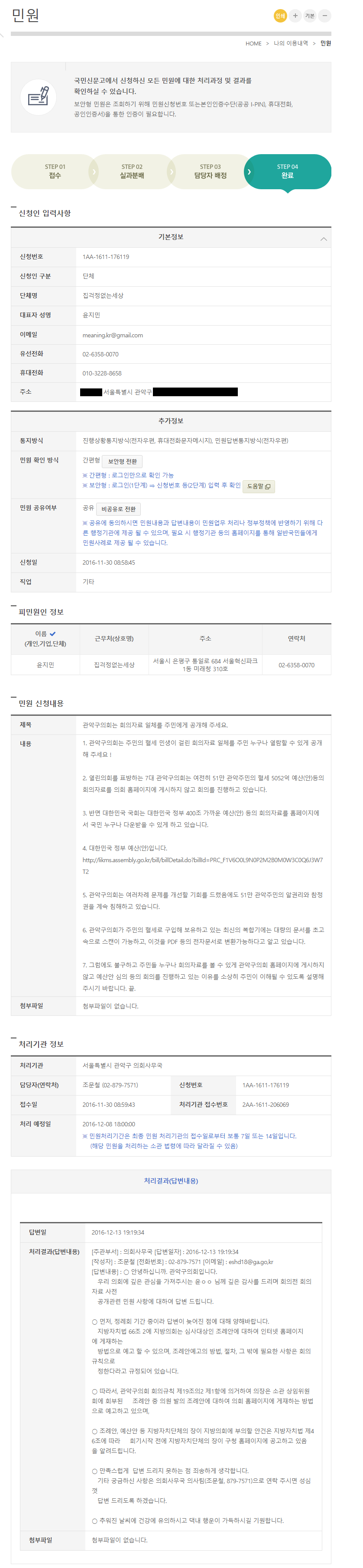 [주관부서] : 의회사무국 [답변일자] : 2016-12-13 19:19:34
