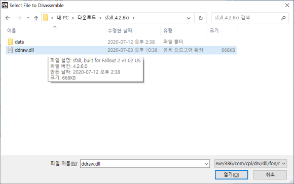 1. Sfall 폴더 안의 ddraw.dll을 연다.