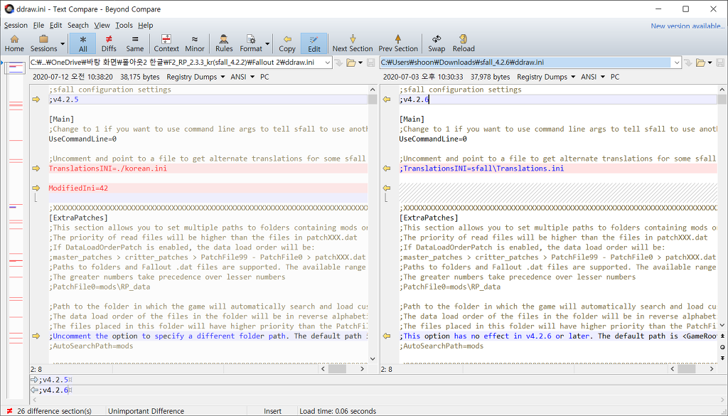 4-1. TranslationsINI=./korean.ini, ModifiedIni=42 라는 내용을 삽입.