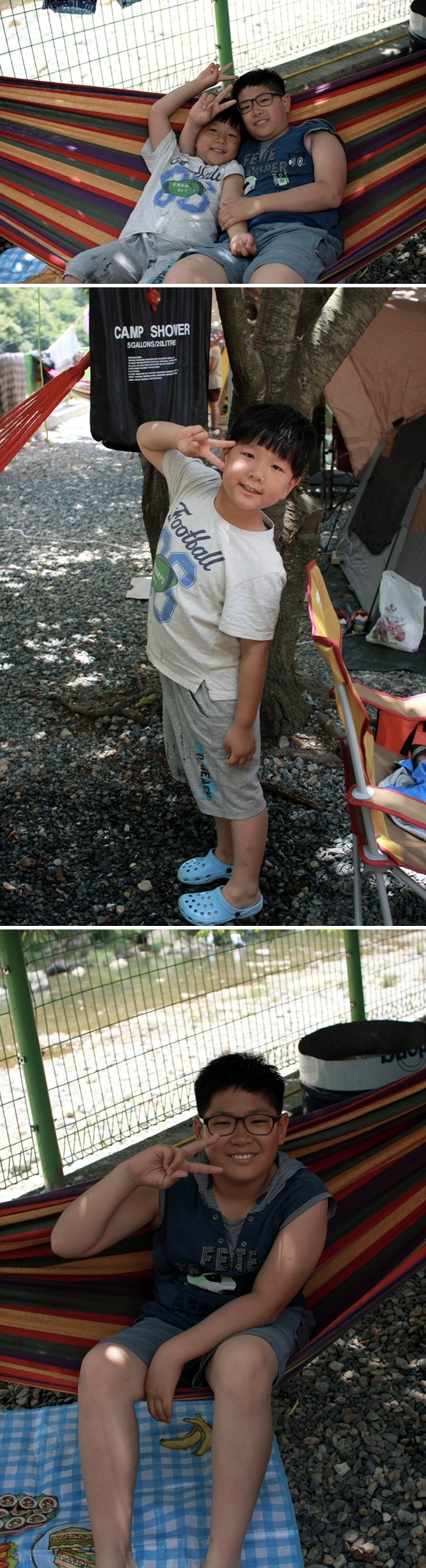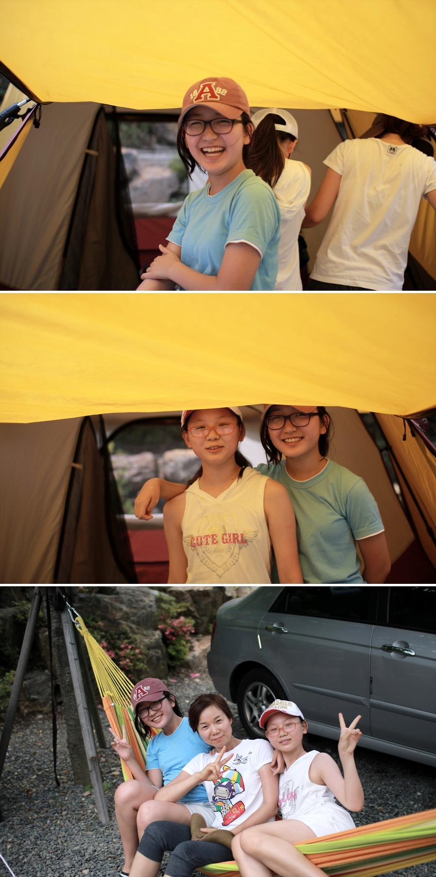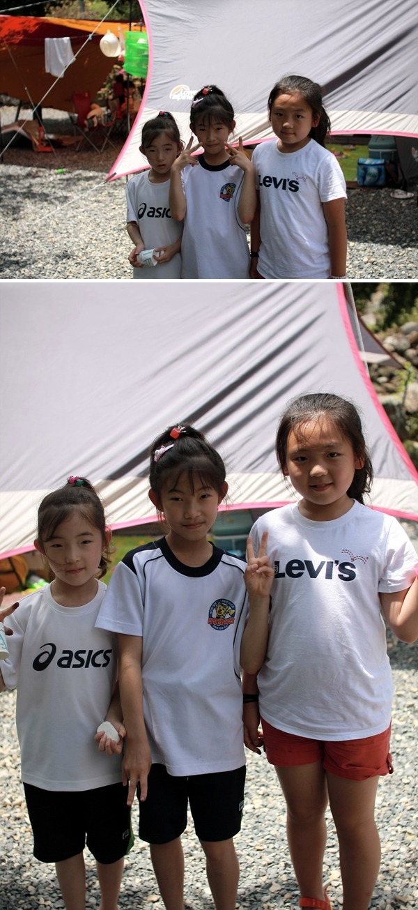 오빠들은 어디갔는지 안보이고 동생들만 남아서 텐트를 지키고 있네?ㅋㅋ