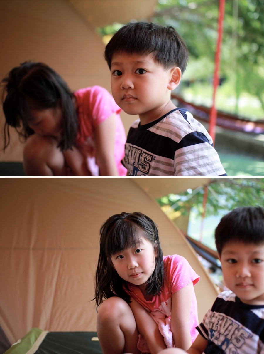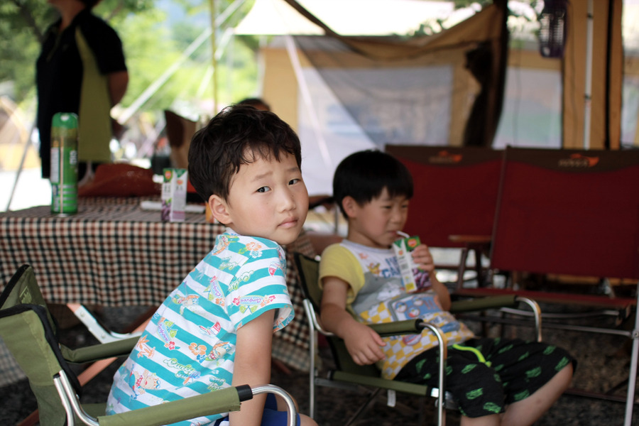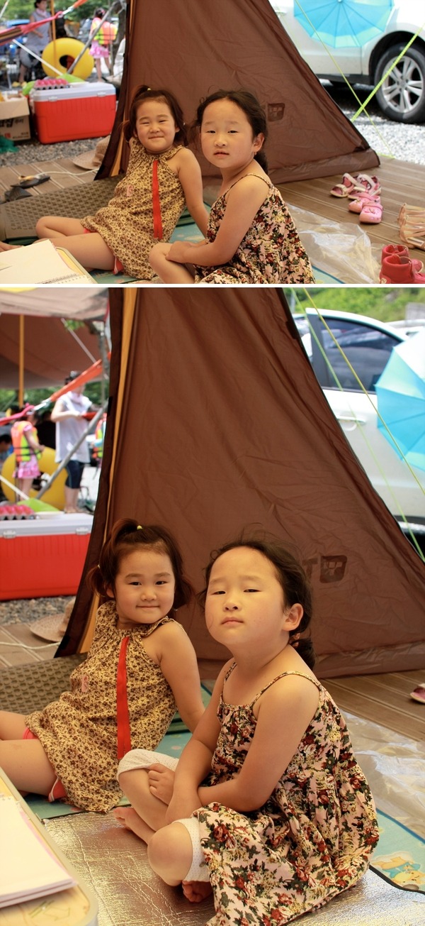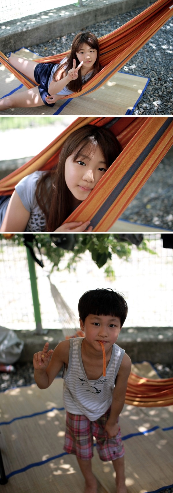 오빠들은 어디갔는지 안보이고 동생들만 남아서 텐트를 지키고 있네?ㅋㅋ