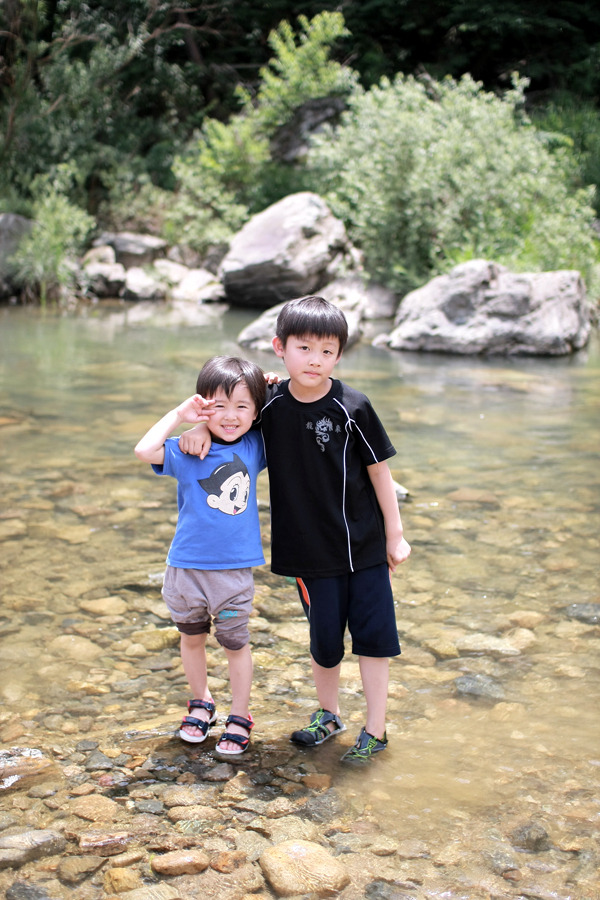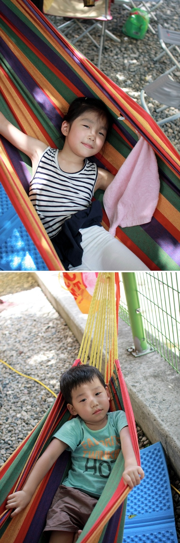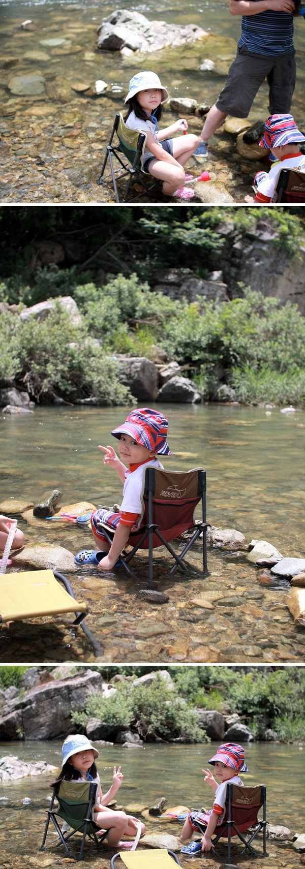 돌을 가지고 자기 영역을 구축한 다음!! 의자에 앉아서 시원~~하게 발을 담그고 있던 남매들ㅎㅎ