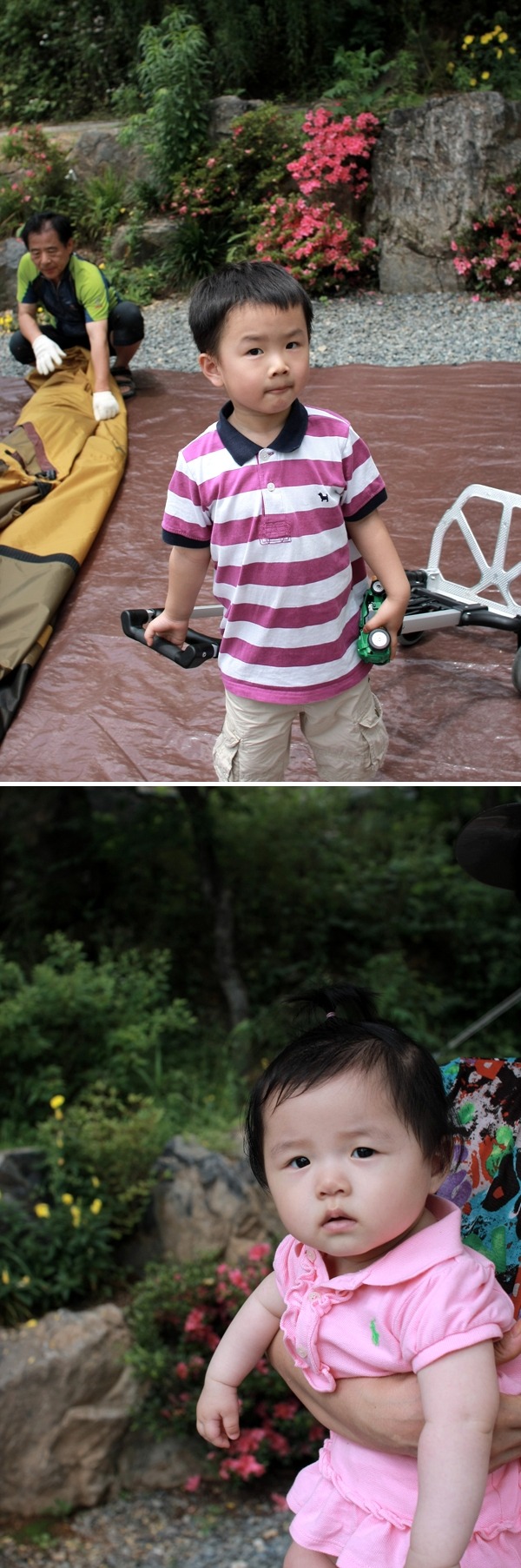 꼬마 캠퍼들 사진 촬영하려고 계곡으로 내려가자마자 처음으로 보였던 남매.