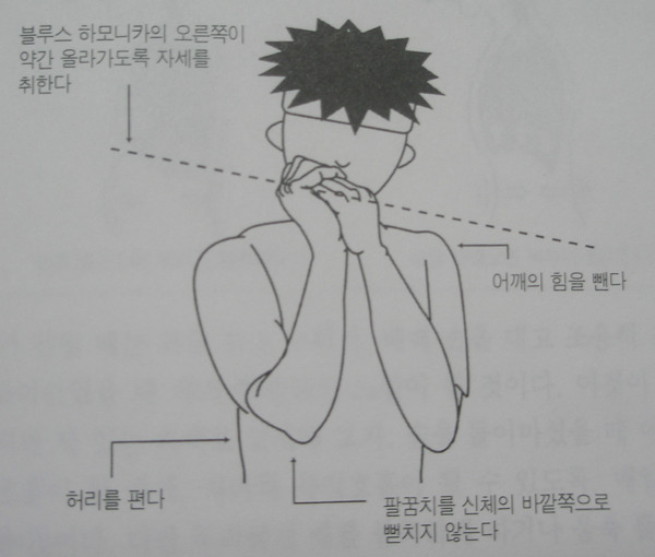 다이아토닉(블루스하프)의 바람직한 연주자세는...