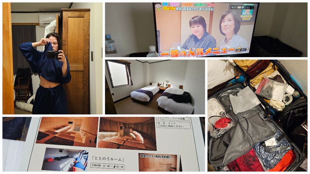 Staying in the older building side, since it is an economy room compared to their more modern building π but I have free breakfasts and access to the sauna, yes not an onsen but a sauna and free use of laundry machine and a bathtub haha! And I can finally do little workouts because I have space. I was worried I was gonna lose my butt π€£ because I haven't been eating much. But I remembered my butt is naturally there, so I don't need to worry π and I missed tv lol! this afternoon til tonight is gonna be and bathtub and cook then movie/tv series night because I have my flash drive and my back hurts