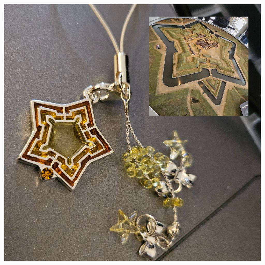 I got myself a little souvenir from the star fortress. Because it's a star, of course. Why yellow? There was blue, green, purple and pink. I chose yellow because usually when we draw/color stars, we make them yellow. The star fortress has 5 points but there is another point, that makes it 6 points π I got pink for ate too, we both wanted black but there wasnt any black