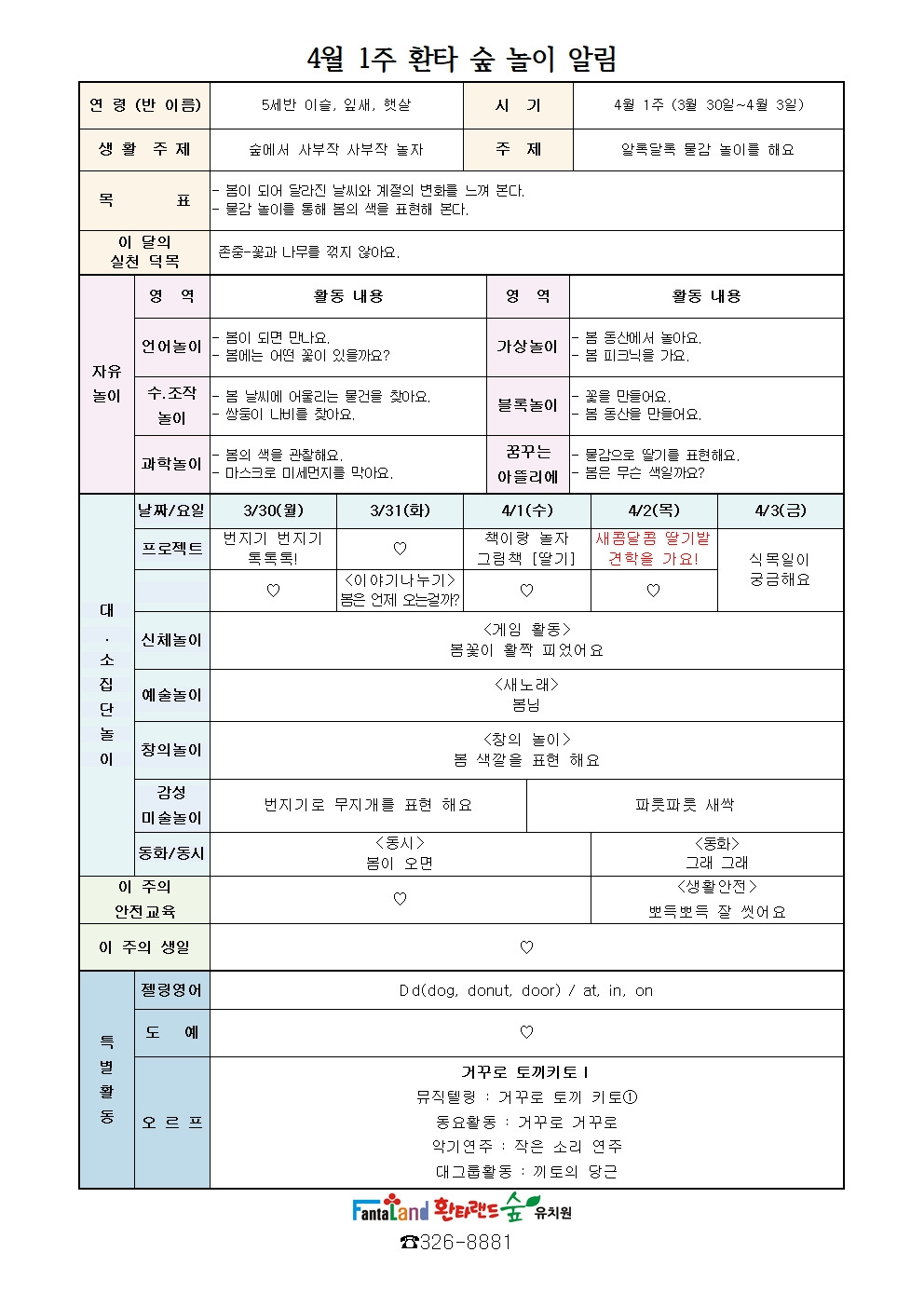 ♥ 4월 1주 주간 놀이 계획안 및 방과후 계획안 입니다 ♥ 작성자박서정선생님|작성시간26.03.27|조회수46 목록 댓글 0 글자크기 작게가 글자크기 크게가 다음검색 현재 게시글 추가 기능 열기 북마크 공유하기 신고 센터로 신고 댓글 댓글 0 댓글쓰기 답글쓰기 댓글 리스트